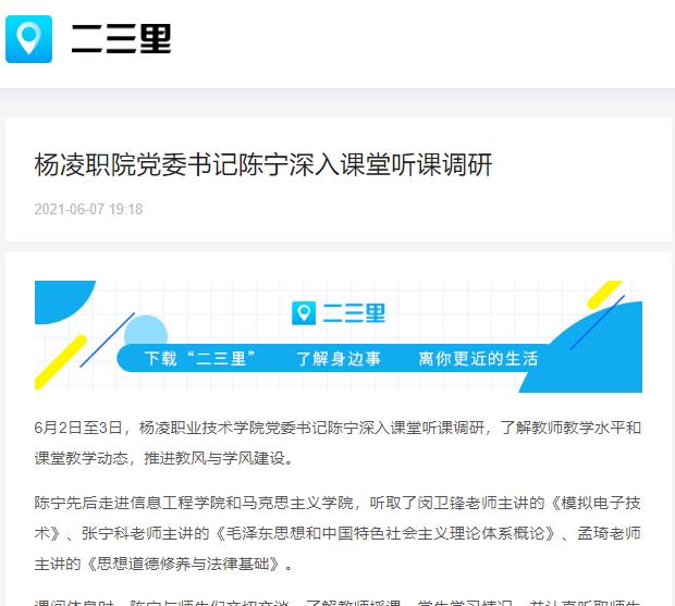 【二三里】杨凌职院党委书记陈宁深入课堂听课调研