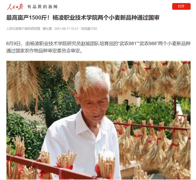 【人民日报】最高亩产1500斤!杨凌职业技术学院两个小麦新品种通过国审