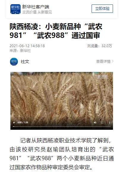 【新华社客户端】陕西杨凌:小麦新品种“武农981”“武农988”通过国审