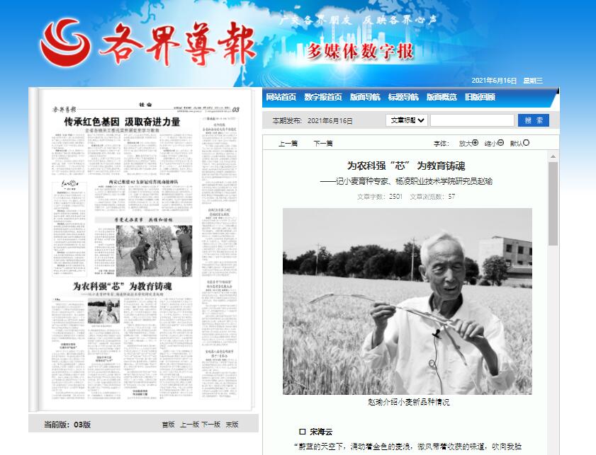 ——记小麦育种专家、杨凌职业技术学院研究员赵瑜