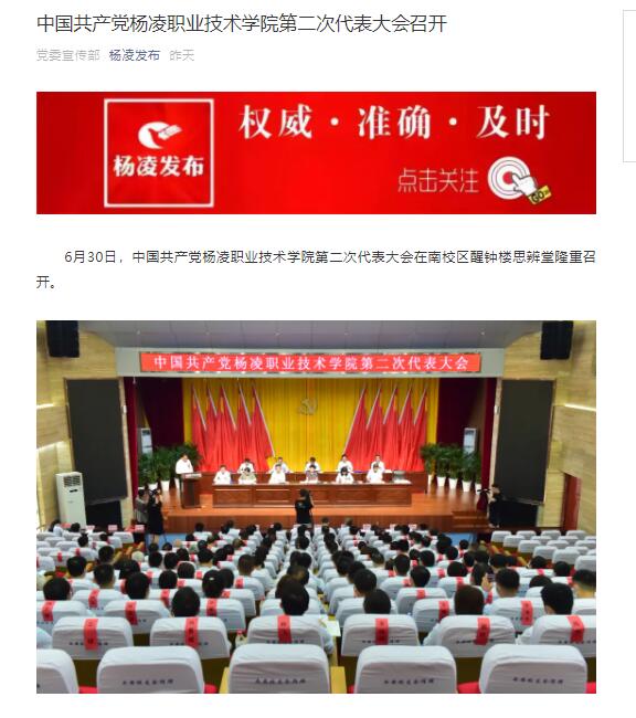 【杨凌发布】中国共产党杨凌职业技术学院第二次代表大会召开