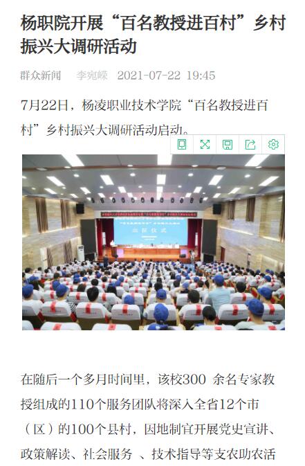 7月22日,杨凌职业技术学院“百名教授进百村”乡村振兴大调研活动启动。