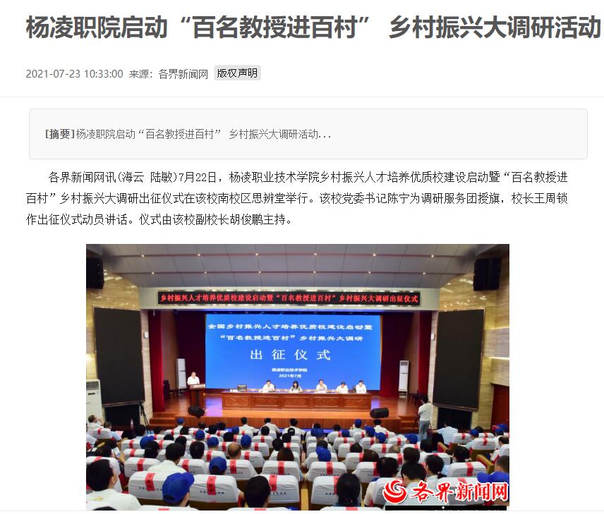 【各界新闻网】杨凌职院启动“百名教授进百村” 乡村振兴大调研活动