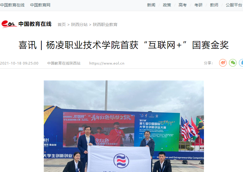 【中国教育在线】喜讯 | 杨凌职业技术学院首获“互联网+”国赛金奖
