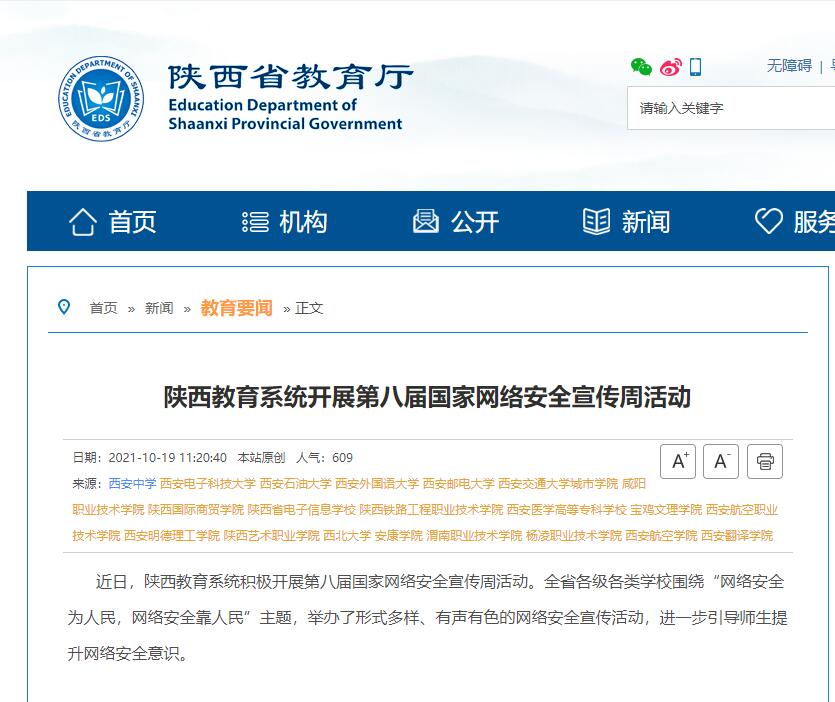 【陕西省教育厅】陕西教育系统开展第八届国家网络安全宣传周活动