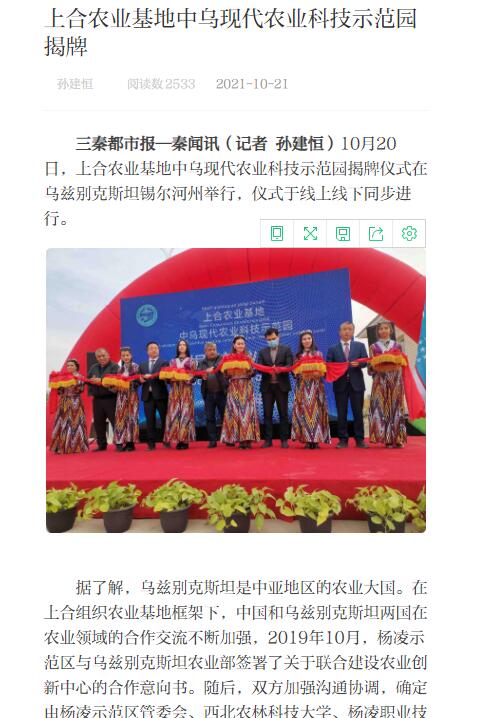【三秦都市报】上合农业基地中乌现代农业科技示范园揭牌