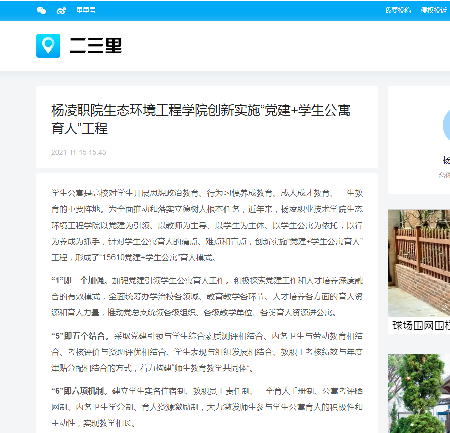 【二三里】杨凌职院生态环境工程学院创新实施“党建+学生公寓育人”工程