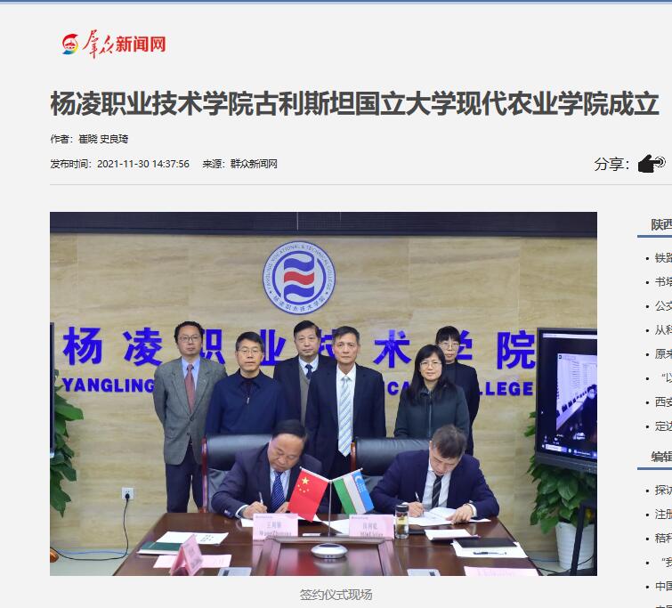 【群众新闻网】杨凌职业技术学院古利斯坦国立大学现代农业学院成立