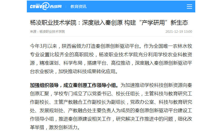 【西部网】杨凌职业技术学院:深度融入秦创原 构建“产学研用”新生态