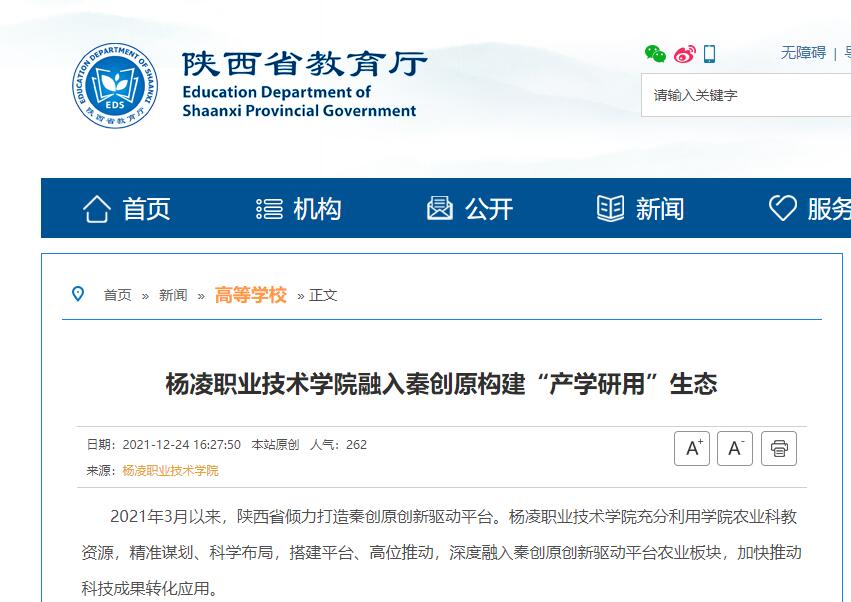 【陕西省教育厅】杨凌职业技术学院融入秦创原构建“产学研用”生态