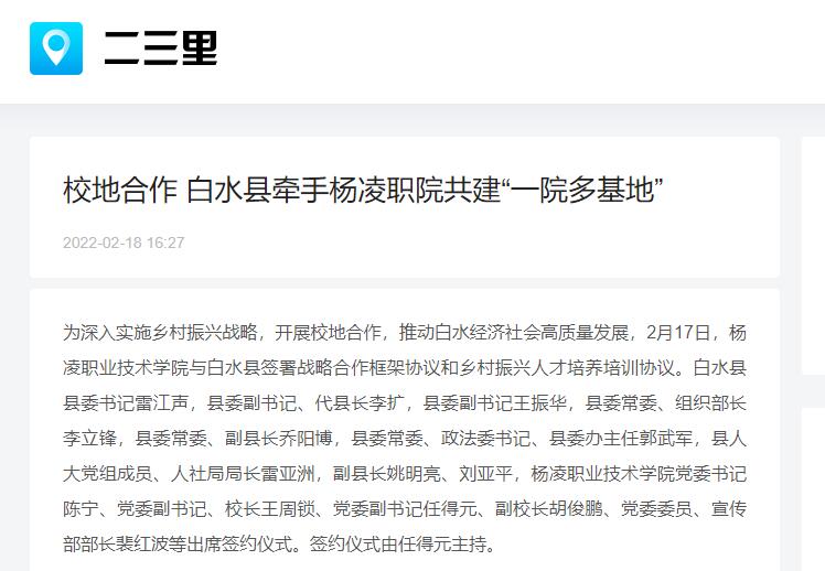 【二三里】校地合作 白水县牵手杨凌职院共建“一院多基地”