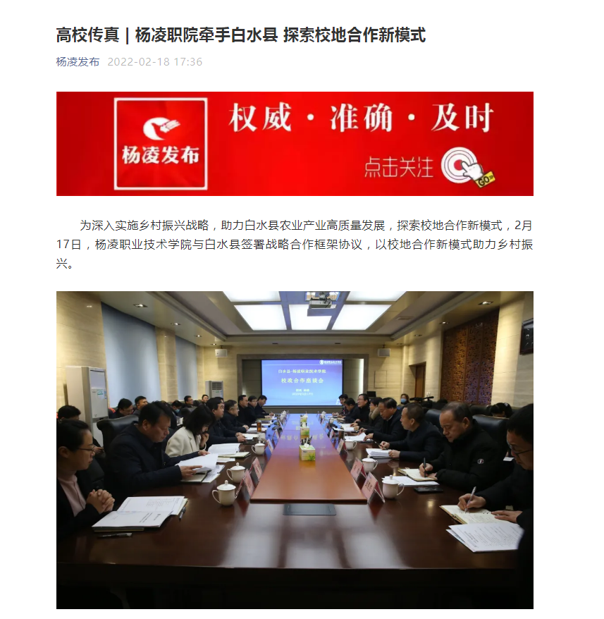 【杨凌发布】高校传真 | 杨凌职院牵手白水县 探索校地合作新模式