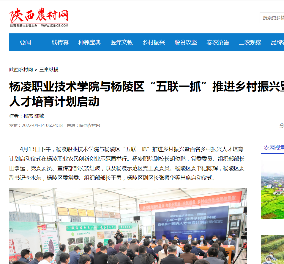 【陕西农村网】杨凌职业技术学院与杨陵区“五联一抓”推进乡村振兴暨百名乡村振兴人才培育计划启动