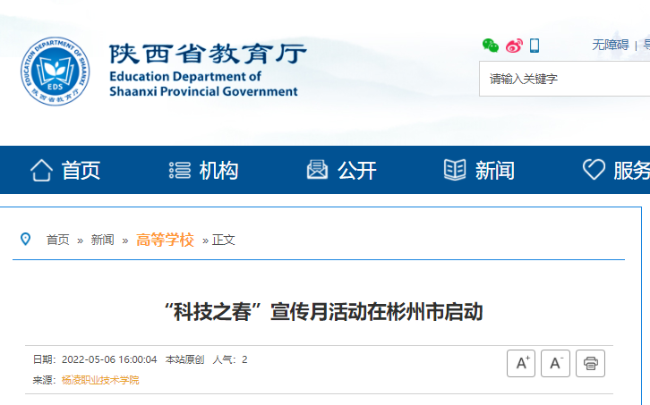【陕西省教育厅】“科技之春”宣传月活动在彬州市启动