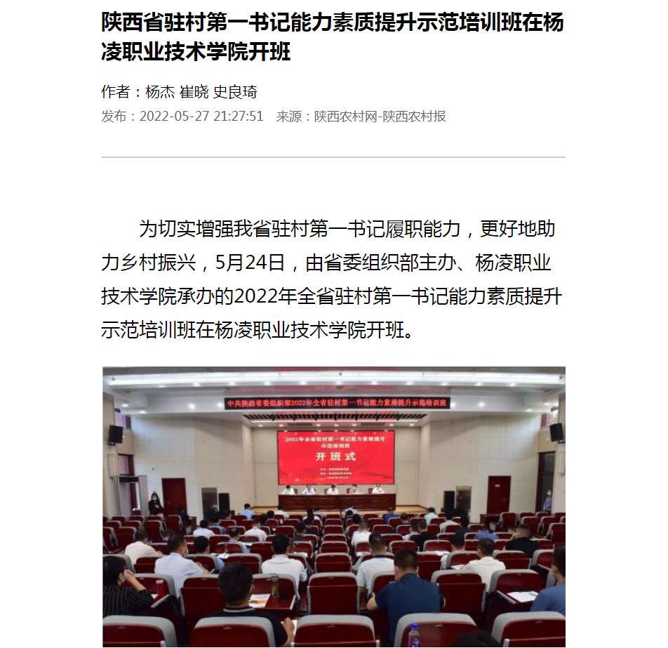 【陕西农村网】陕西省驻村第一书记能力素质提升示范培训班在杨凌职业技术学院开班