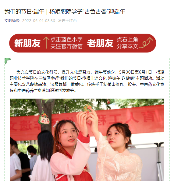 【文明杨凌】我们的节日·端午 | 杨凌职院学子“古色古香”迎端午