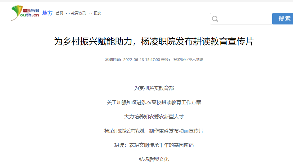 【中国青年网】为乡村振兴赋能助力,杨凌职院发布耕读教育宣传片