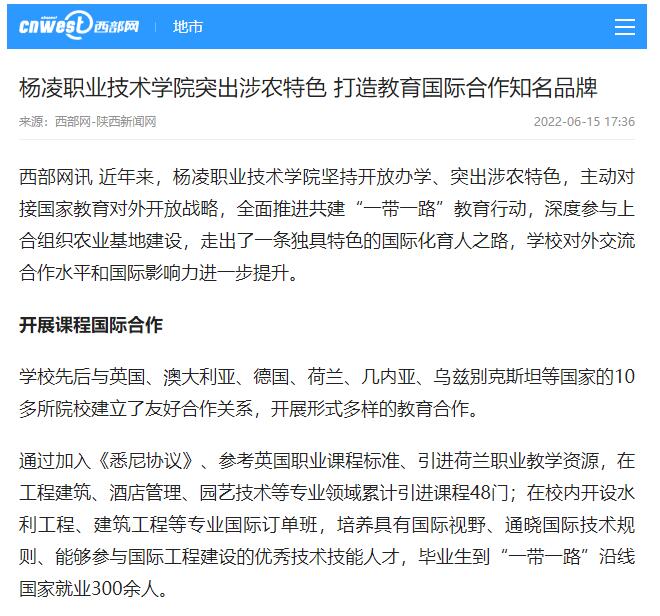 【西部网】杨凌职业技术学院突出涉农特色 打造教育国际合作知名品牌