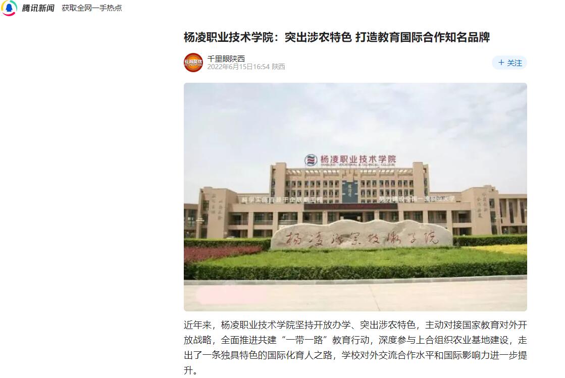 【腾讯新闻】杨凌职业技术学院:突出涉农特色 打造教育国际合作知名品牌