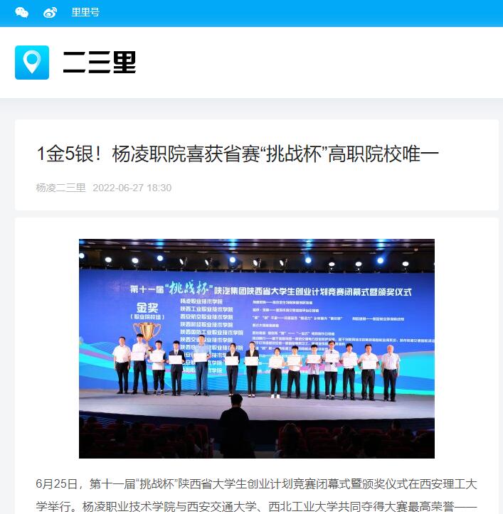 【二三里】1金5银!杨凌职院喜获省赛“挑战杯”高职院校唯一