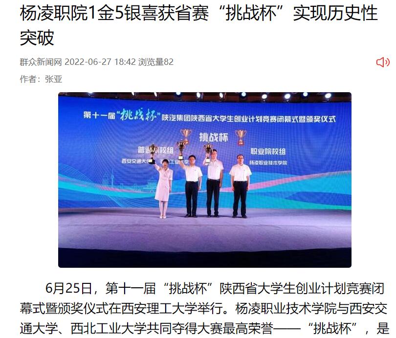 【群众新闻网】杨凌职院1金5银喜获省赛“挑战杯”实现历史性突破