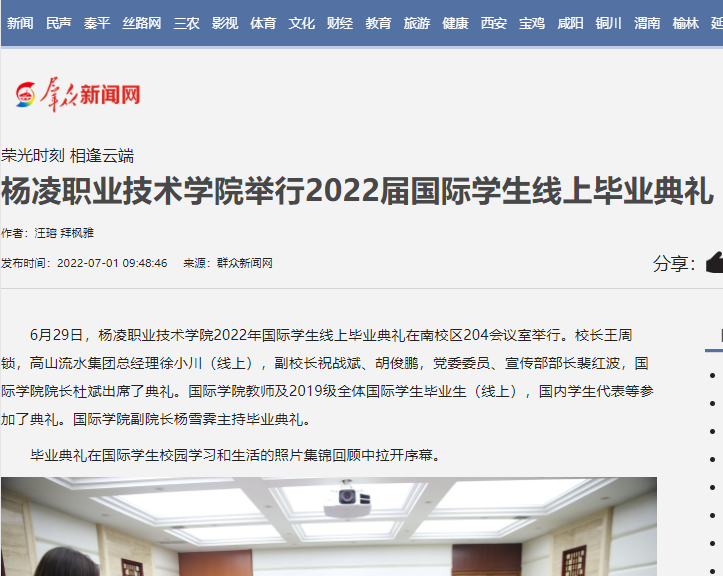 【群众新闻网】荣光时刻 相逢云端,杨凌职业技术学院举行2022届国际学生线上毕业典礼