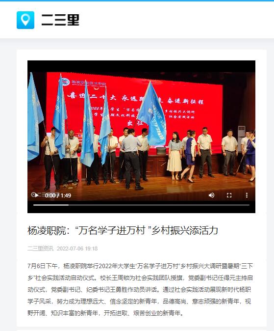 【二三里】杨凌职院:“万名学子进万村 ”乡村振兴添活力