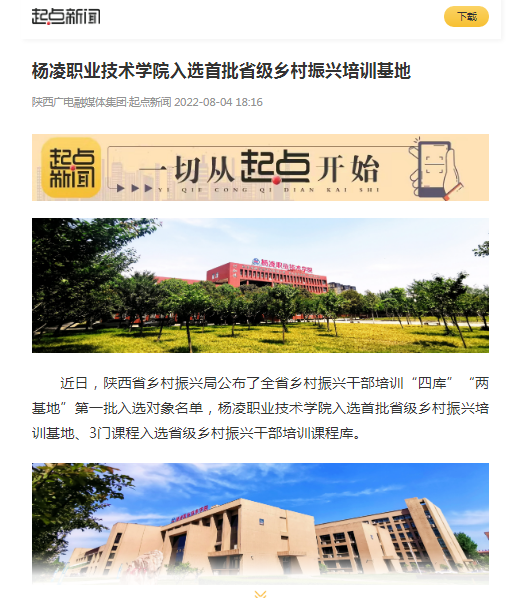 【起点新闻】杨凌职业技术学院入选首批省级乡村振兴培训基地