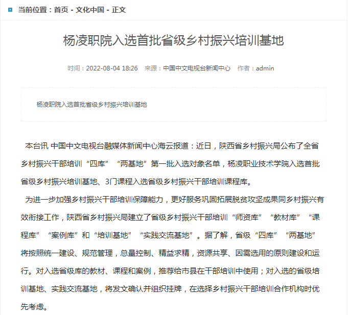 【中国中文网】杨凌职院入选首批省级乡村振兴培训基地