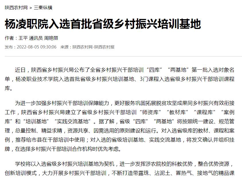 【陕西农村网】杨凌职院入选首批省级乡村振兴培训基地