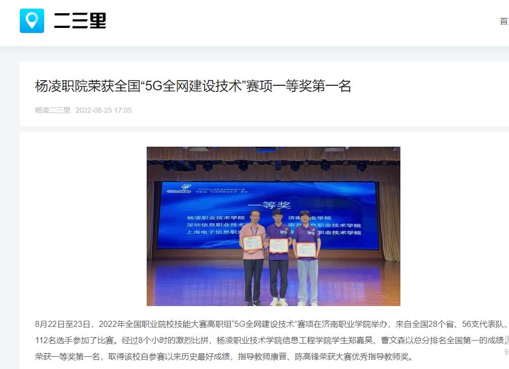 【二三里】杨凌职院荣获全国“5G全网建设技术”赛项一等奖第一名