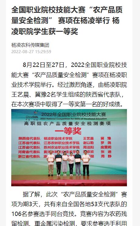 【杨凌农科传媒集团】全国职业院校技能大赛“农产品质量安全检测” 赛项在杨凌举行