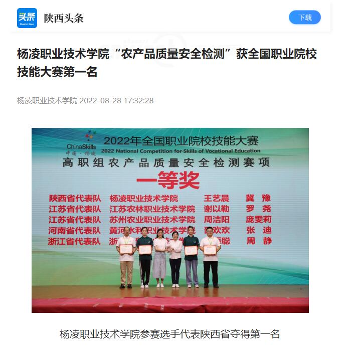 【陕西头条】杨凌职业技术学院“农产品质量安全检测”获全国职业院校技能大赛第一名