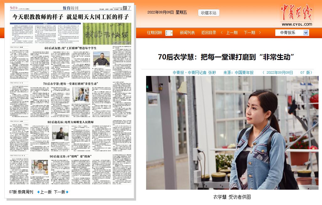 【中国青年报】70后衣学慧:把每一堂课打磨到“非常生动”