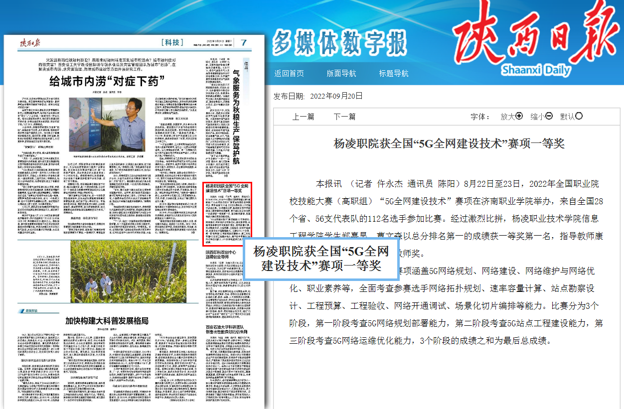 【陕西日报】杨凌职院获全国“5G全网建设技术”赛项一等奖