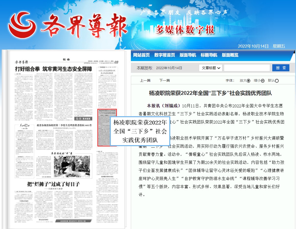 【各界导报】杨凌职院荣获2022年全国“三下乡”社会实践优秀团队