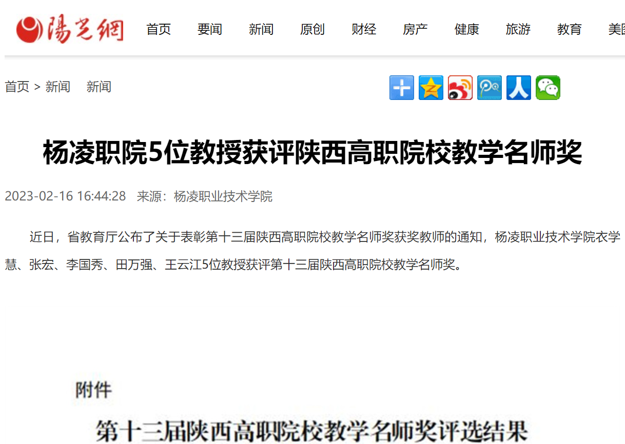 【阳光网】杨凌职院5位教授获评陕西高职院校教学名师奖