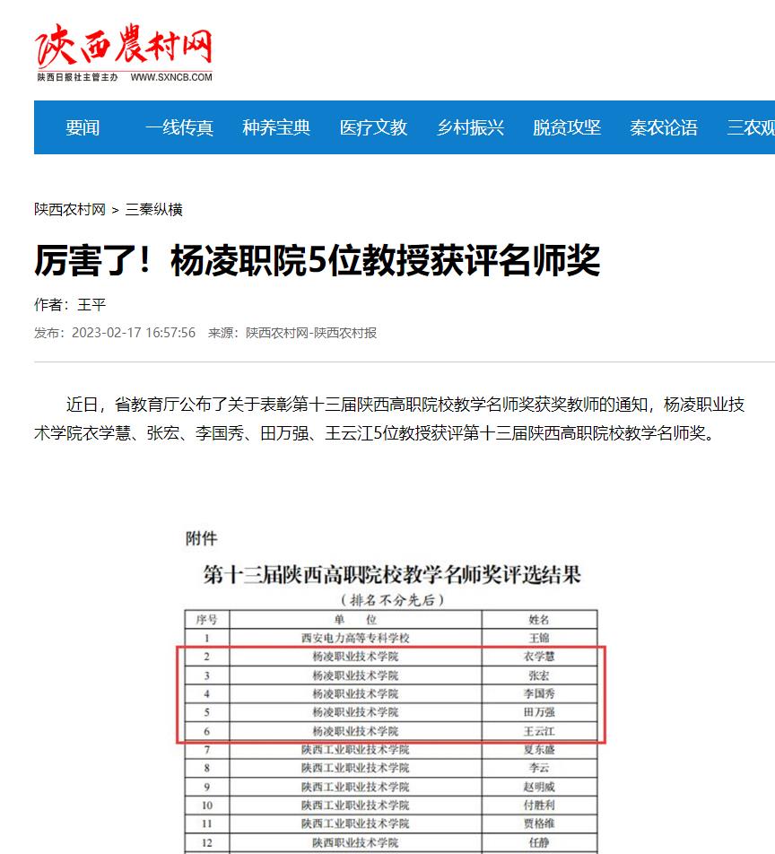 【陕西农村报】厉害了!杨凌职院5位教授获评名师奖