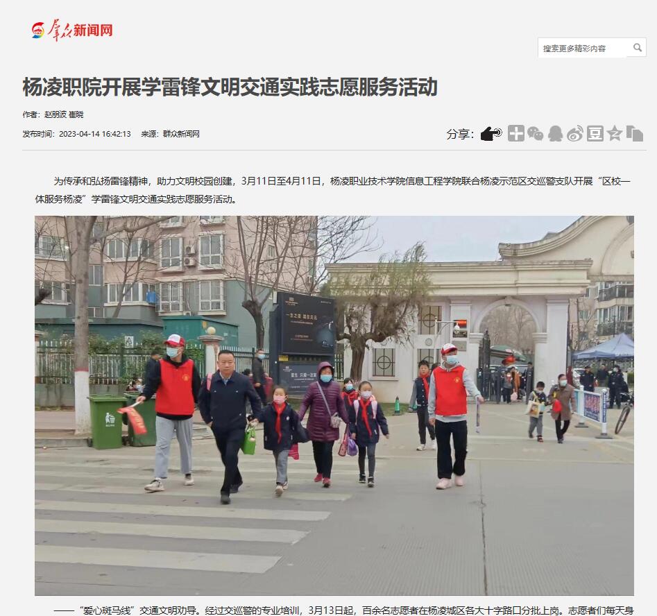 传承和弘扬雷锋精神,助力文明校园创建,3月11日至4月11日,杨凌职业技术学院信息工程学院联合杨凌示范区交巡警支队开展“区校一体服务杨凌”学雷锋文明交通实践志愿服务活动。