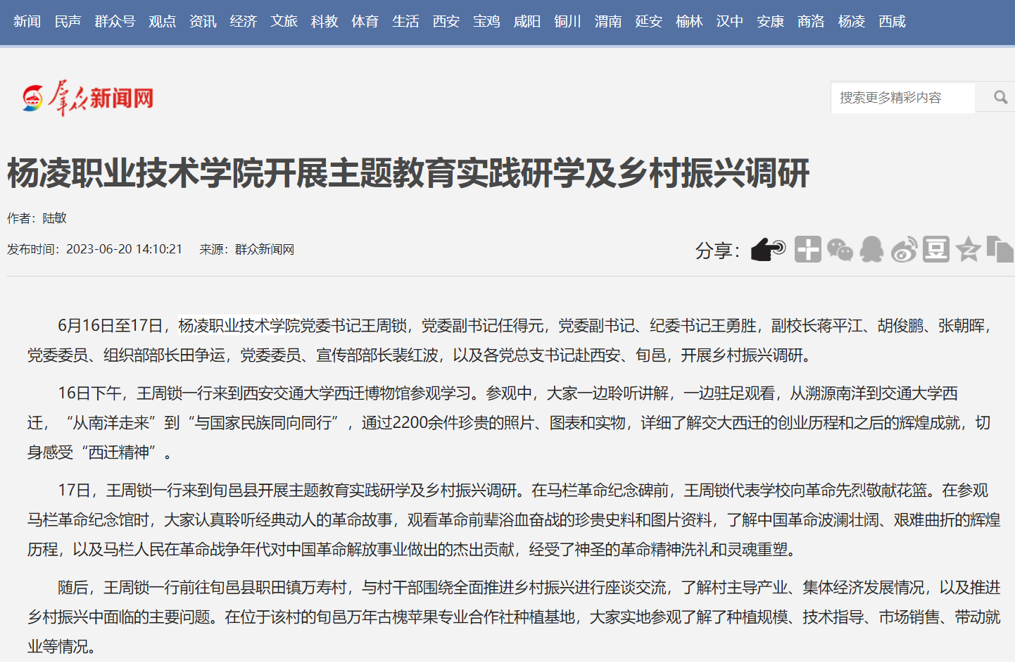 【群众新闻网】杨凌职业技术学院开展主题教育实践研学及乡村振兴调研