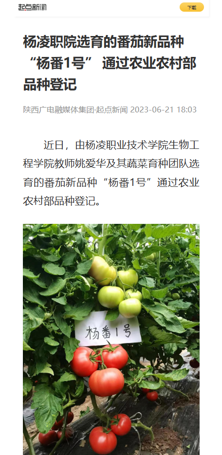 【起点新闻】杨凌职院选育的番茄新品种“杨番1号” 通过农业农村部品种登记