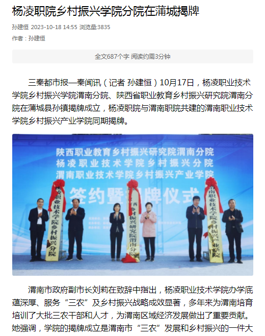 【秦闻】杨凌职院乡村振兴学院分院在蒲城揭牌