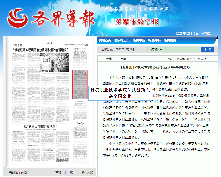 【各界导报】杨凌职业技术学院荣获创新大赛全国金奖