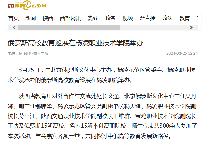 【西部网】俄罗斯高校教育巡展在杨凌职业技术学院举办