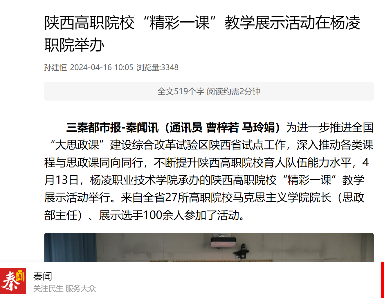 【秦闻】陕西高职院校“精彩一课”教学展示活动在杨凌职院举办