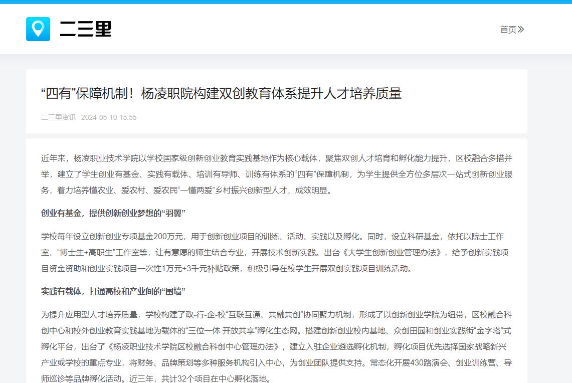 【二三里】“四有”保障机制!杨凌职院构建双创教育体系提升人才培养质量