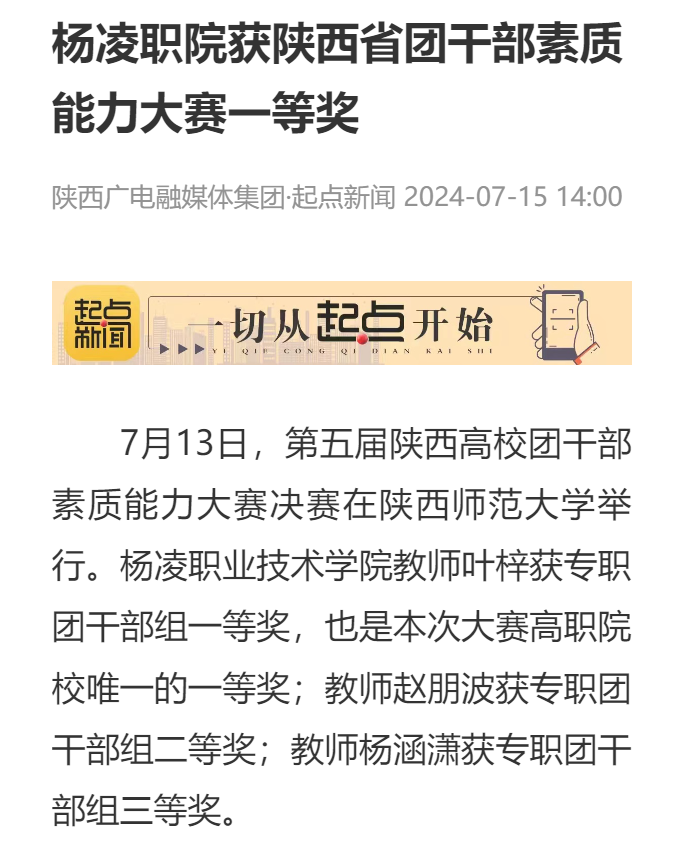 【起点新闻】杨凌职院获陕西省团干部素质能力大赛一等奖