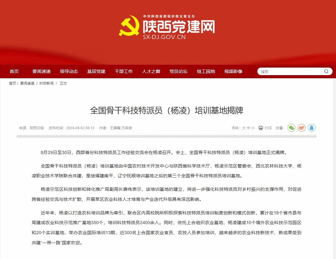 【陕西党建网】全国骨干科技特派员(杨凌)培训基地揭牌