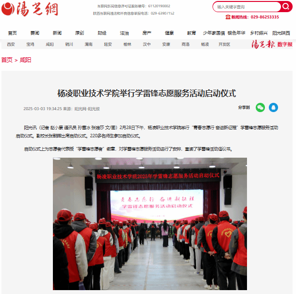 【阳光网】杨凌职业技术学院举行学雷锋志愿服务活动启动仪式