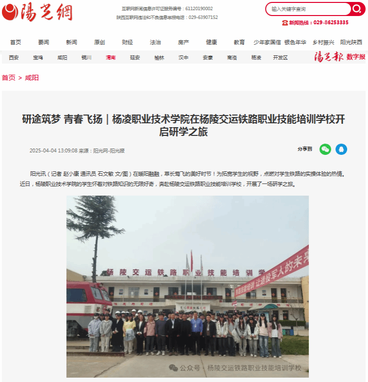【阳光网】研途筑梦 青春飞扬|杨凌职业技术学院在杨陵交运铁路职业技能培训学校开启研学之旅